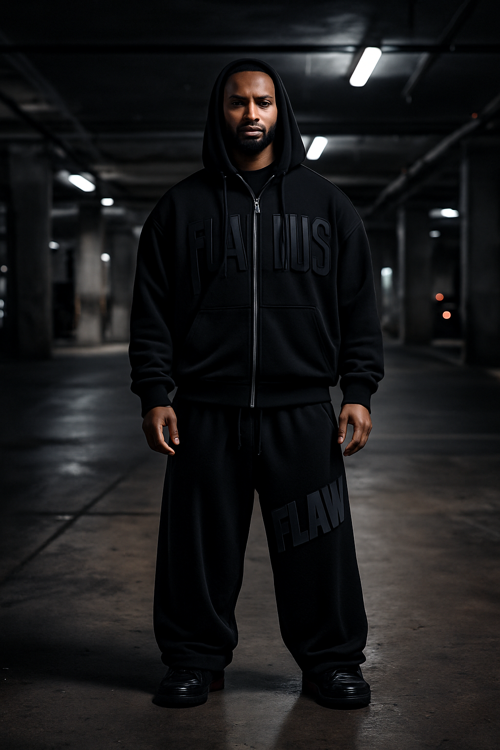 STITCHED BLACK ON BLACK ZIPUP JACKET